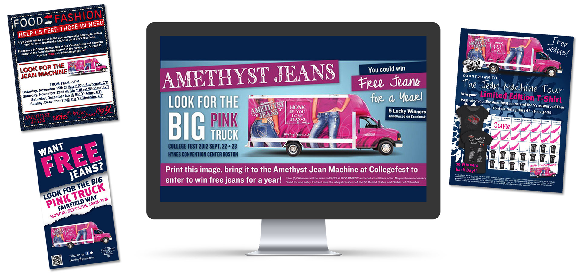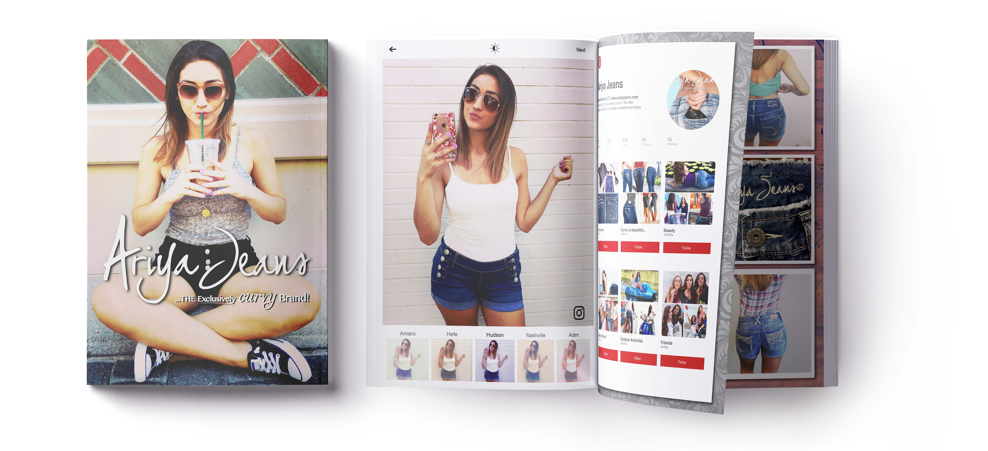 Lookbook, magazine ads, posters web & social media graphics, trims and Photoshop magic for junior denim brands Amethyst Jeans and Ariya Jeans.